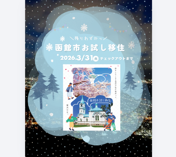 【残りわずか!】函館市お試し移住⚓️北海道函館市2026/1/310 -