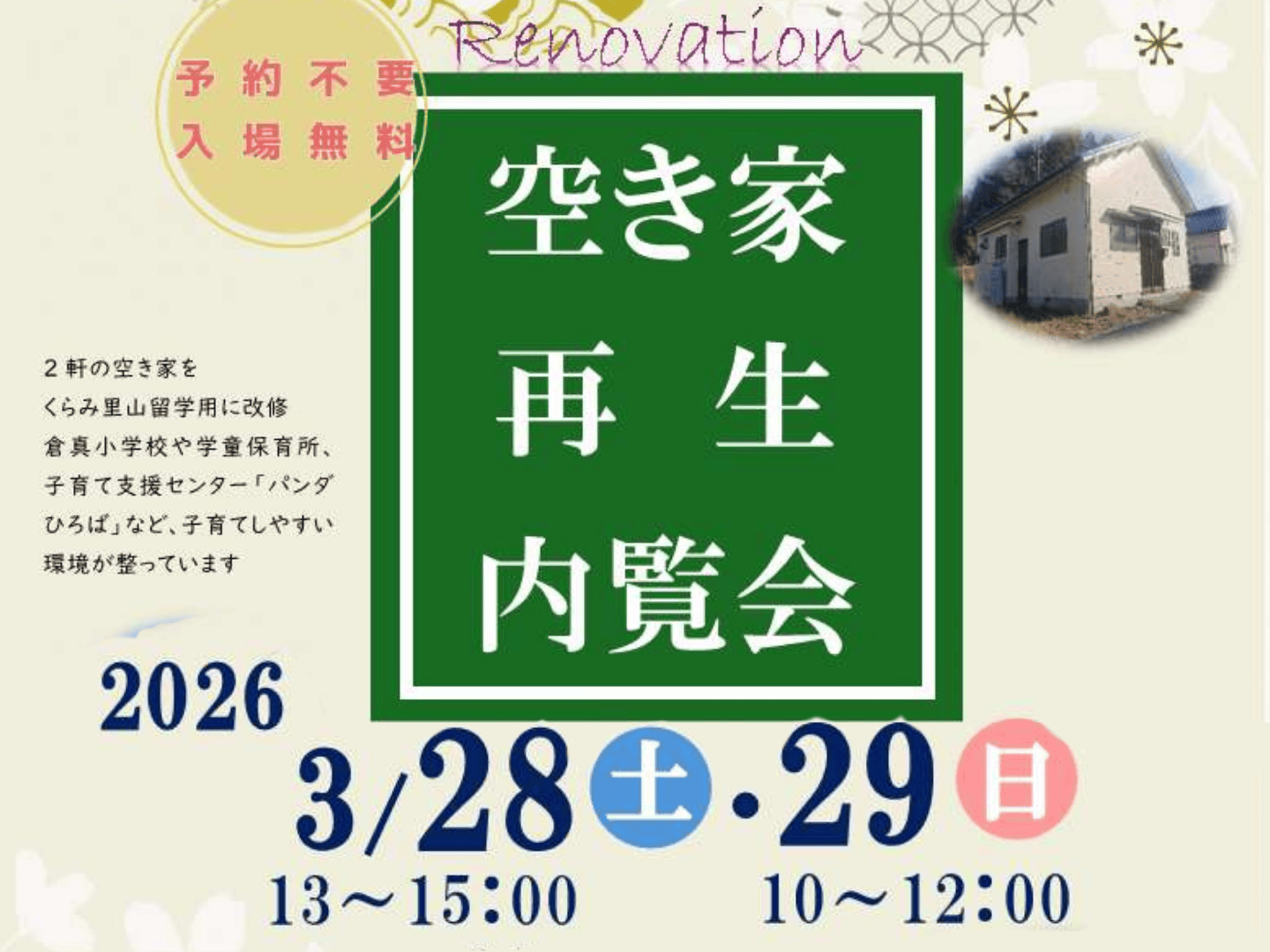 3/28・29くらみ里山留学「空き家再生内覧会」開催します