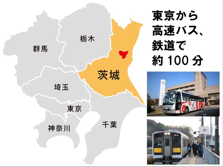 那珂市は、茨城県の真ん中よりちょっと北、県庁所在地・水戸市や、商工業が発達したひたちなか市、日立市のお隣。便利な市街地と緑豊かな田園地帯が融合した「いぃ具合の田舎」です。海にも山にもアクセスが良く、春は「日本さくら名所100選」に選ばれた静峰ふるさと公園の八重桜、夏は25万本のひまわり畑、冬は白鳥など、暮らしの楽しみが盛りだくさん。子育てにもピッタリの、のびのび暮らしが楽しめるまちです。また、干し芋などの農産物の生産も盛んなほか、海外でも人気の「常陸野ネストビール」で有名な木内酒造の本店があり、おいしいものがいっぱいです。東京から車、電車、バスで約100分。ぜひ、のぞいてみてください。