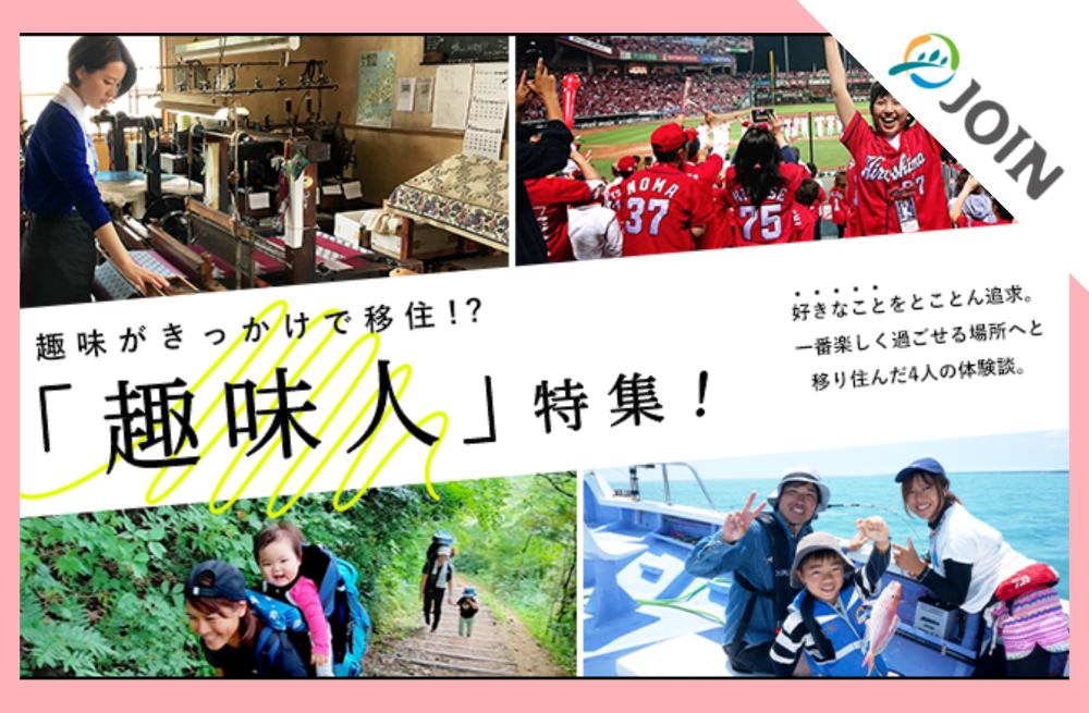 「もっと趣味を満喫したい!」「趣味を仕事にしたい!」 こんな想いを持ったことがある方も多いのではないでしょうか。 今回は、そんな「趣味」をきっかけに移住までしちゃった方の体験談をニッポン移住・交流ナビJOINの記事よりご紹介します。 あなたの参考になる体験談があるかもしれません。 ぜひ移住を検討する際の参考にしてみてくださいね! ーーーーーーーーーーーー 【山登り】 趣味の山登りを仕事に!冬はウインタースポーツ! ・おなまえ:佐伯さん ・移住先:富山県立山町 ・お仕事:登山ガイド 【着物】 業界未経験から機屋(はたや)に!すべての時間で着物に接する。 ・おなまえ:関川さん ・移住先:埼玉県秩父市 ・お仕事:機屋、着物のレンタルショップ経営 【広島カープ】 カープ愛に気づき移住!仕事にも役立っています。 ・おなまえ:木佐さん ・移住先:広島県広島市 ・お仕事:キャリアコンサルタント 【釣り】 初代焼津市域おこし協力隊!快適に過ごして5年目です! ・おなまえ:三浦さん ・移住先:静岡県焼津市 ・お仕事:地域プロジェクトマネージャー ーーーーーーーーーーーー 気になる記事の詳細は下記URLからご確認ください。 ▶ 趣味がきっかけで移住!?「趣味人」特集! https://www.iju-join.jp/feature_cont/file/106/