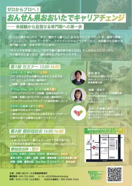 おんせん県おおいたの“学び・働き方・暮らし”を知る移住&転職イベントが開催されます。 個別相談会も同時に開催されますので、各市町の移住担当者にリアルな情報を聞くことができます。竹田市も出展しますので、この機会に竹田市の担当者と話してみませんか。 地方暮らしのヒントを聞けるチャンスです!