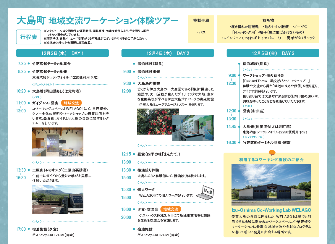 【12/3(水)~5(金)】自然豊かな大島町で、ワーケーションを体験しませんか?