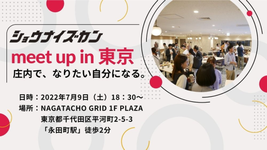 夜の部 「ショウナイズカン meet up in Tokyo」 \こんな方にお勧め/ ・パパ目線の子育て、庄内のリアルを聞いてみたい ・庄内の仕事のホントを知ってみ ・庄内への移住、転職検討している人同士交流してみたい ・農業に興味がある ▶移住後の生活が知れる! トーク形式で、実際に庄内に暮らす方から、移住前に知っておきたい生活や仕事の情報をゲットできます。 ▶移住検討者同士の交流 庄内地域に関心がある方が集まり、山形出身の方も参加されるかもしれません。情報交換や、交流を通して現実的な移住を考える機会に! ▶ディープな庄内を知るクイズ クイズ形式で、知られざる庄内を楽しく掘り下げていきます。 【時間】18:30~20:30 ※途中退室OK 【会場】Nagatacho GRiD 1F PLAZA 【申し込み方法】 [申込フォーム] https://forms.yamagata-design.com/yamagatadesign/form/Meetup20222/formperma/vMOTLM5uPzM_V2c5kkEzrN9oZMJBRyyJiPvNfvHP83w =========================== 「ショウナイズカン meet up in Tokyo」URL https://www.yamagata-design.com/press-room/meetuptokyo-78hll-tlw72?utm_source=governmenttsuruoka&utm_medium=linkutm_campaign=mt_2022070920220709 =========================== 【問い合わせ先】 ショウナイズカン MAIL: shonaizukan@yamagata-design.com