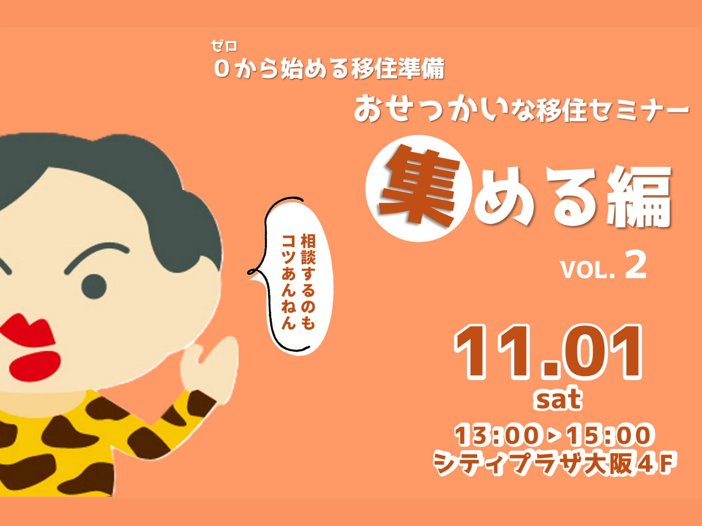 「いつかは移住してみたい」「田舎暮らしに興味はあるけど、何から始めればいいの?」 そんな“移住初心者さん”にぴったりの入門セミナーです。 ゼロから準備を始める方に向けて、順番に、わかりやすくサポートします♪ ーーー 0から始める移住準備 おせっかいな移住セミナー 「集める編」 ■開催日: 11/1(土)13時~15時 ■会場: ふるさと回帰支援センター・大阪 大阪市中央区本町橋2-31 シティプラザ大阪 ■参加費:無料! ▶詳細はこちら https://www.osaka-furusato.com/seminar/35240/ ーーー \こんな方にオススメ!/ ・移住を考え始めた方 ・何から始めていいか分からない方