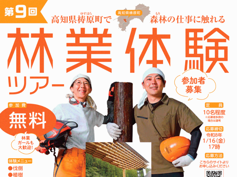 \\申込み締切を延長しました!// 締切が1/16→1/30に延長となりました。ぜひお申込みください🌲✨ 高知県梼原町(ゆすはらちょう)で暮らし、林業で生計を立ててみたいという方が対象です。 林業現場の視察だけでなくチェーンソーや植樹などの作業体験のほか、 地元林業家との交流なども含まれた充実した内容です。 \地域おこし協力隊卒業後の起業や就職のサポートもしてます/
