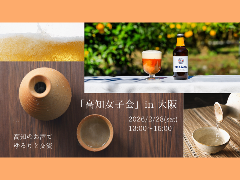 高知は、美味しいお酒が集まる場所。 世界中で愛される土佐酒はもちろん、最近はクラフトビールも熱いってご存知ですか? 「高知女子会 in 大阪」は、高知とお酒を愛する人たちと交流しながら、 高知の暮らし・文化・人の魅力をお届けする交流イベントです。 ゲストはクラフトビールの造り手であり、移住者でもある瀬戸口さん。 リアルな移住ストーリーや起業の舞台裏、地域でのつながりまでお話しいただきます。 さらに、土佐酒&クラフトビールの飲み比べワークショップもご用意。 お酒を入り口に、高知を知るきっかけにしませんか? 高知を移住候補地として考える“はじめの一歩”になる2時間です。 お酒が好きな方は、ぜひご参加ください。 みんなで楽しくおしゃべりしながら、高知の魅力を一緒に味わいましょう! ■日 時:2026年2月28日(土)13:00~15:00(受付開始 12:50) ■場 所:597_SpemoCAMP大阪梅田(大阪市北区梅田1-3-1 大阪駅前第一ビル 6/7号室) 大阪環状線 大阪駅 徒歩3分・大阪メトロ四つ橋線 西梅田駅 徒歩3分 ■定 員:20名(応募多数の場合は抽選) ■参加費:無料 ※女性同伴であれば、男性の方もご参加いただけます。 ※2/15(日)参加受付〆切、2/18(水)までに結果をお知らせします。 ※本イベントはアルコール飲料の提供を伴うため、健康被害の防止および 法律遵守の観点から、20歳未満の方のご参加は一律でお断りしております。 ※イベント終了後は必ず車の運転を控え、代行運転や公共交通機関など、 他の手段を利用してご帰宅ください。 【タイムスケジュール】 12:50 受付開始 13:00~13:15 高知で暮らすための基本情報ご紹介 13:15~13:50 ゲストトーク+クラフトビール試飲、質疑応答 13:50~14:00 土佐酒のご紹介 14:00~15:00 土佐酒飲み比べワークショップ&交流タイム