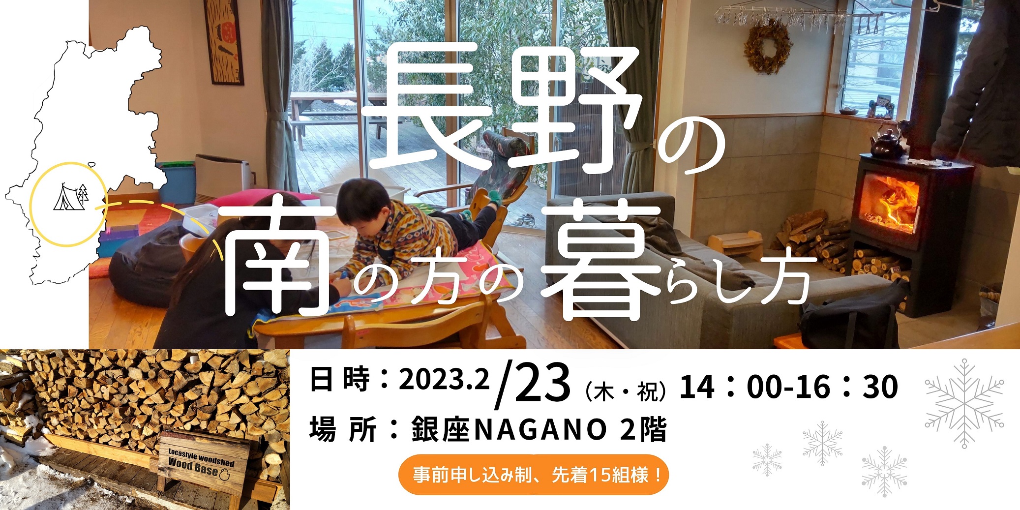 【日時】 2月23日(木・祝) 午後2時から午後4時30分まで 【申込方法】 参加には事前申込が必要です。 事前申込は下記申込フォームからお願いします。 【会場】 銀座NAGANO (受付は2階にお越しください) (東京都中央区銀座5-6-5 NOCOビル2階および5階) 【スケジュール】 13:45~ 受付開始 14:00~ 上伊那地域の紹介 14:10~ 薪ストーブのある暮らし(ゲストスピーカーによる体験談) 14:30~ 移住者・移住相談窓口担当者とのフリートーク 15:30~ 市町村との個別相談 16:30 終了